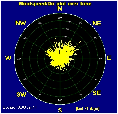 Maximum windspeed = 11.5 mph from 305°( NW) on day 03 at time 14:14
